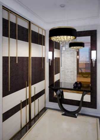 Необычное оформление фасада купе может стать изюминкой интерьера маленького помещения.