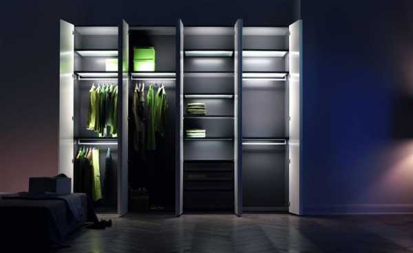 Есть шкафы с шуфлядками и ящиками, оснащенными специальным датчиком для удобного открывания. Внутри шкафа может быть светодиодный светильник. Наконец, самые интересные варианты могут быть связаны с фасадом шкафа.