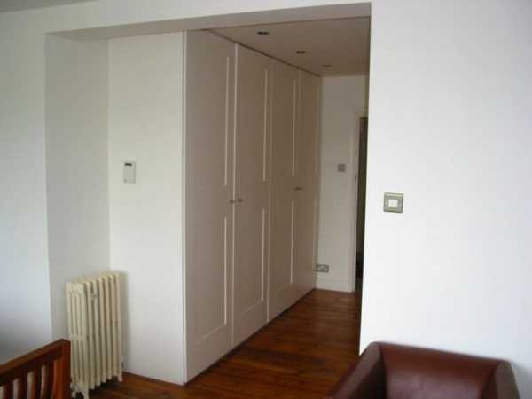 Шкаф может располагаться прямо у двери. Особенность конструкции купе не помешает движению входной двери.