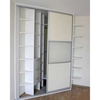 Внутреннее наполнение купе можно адаптировать под запросы владельца. Здесь размещают полки и выдвижные ящики, корзины, антресоли для шляп и специальные полки для обуви. Для удобства пользования в шкафу предусматривают систему минилифта.