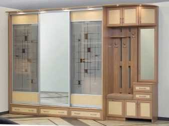 Очень популярной мебелью для оформления прихожей является угловой встроенный шкаф в прихожую купе. Он может быть как встроенным, так и корпусным. В любом случае можно существенно сэкономить жилое пространство, используя его рационально. Благодаря оснащению дверей зеркалами или стеклом можно зрительно увеличить пространство, обеспечить прихожую высоким зеркалом.