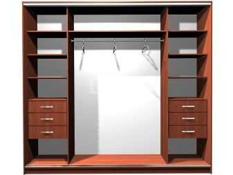 После составления общего чертежа шкафа с учетом габаритов и расположения, начинают продумывать его наполнения. Наполнение – это все вешалки, полочки и распорки, которые находятся внутри.