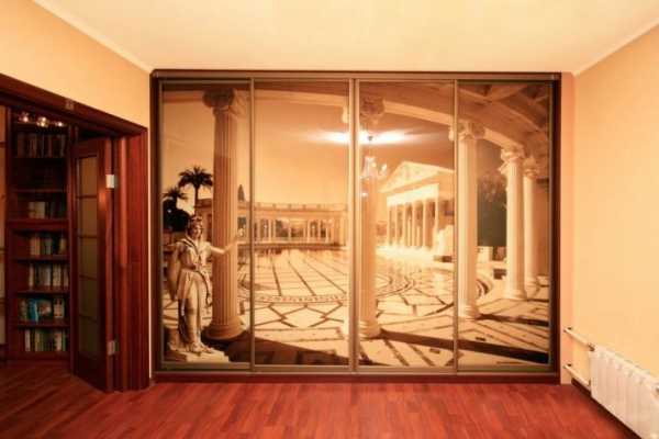 Рационально использован каждый метр пространство, сколько «дверный» будет шкаф, вы тоже решаете сами. Определяется вами и длина, и глубина шкафа, и фасад. Дизайн шкафа может быть каким угодно – иногда это сплошь зеркала. Можно посмотреть образцы, или создать что-то свое.