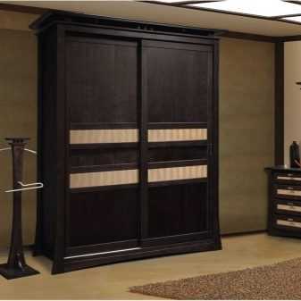 В первую очередь, определяйтесь с моделью шкафа, а уже потом решайте, из каких материалов он будет сделан. Если в одном шкафу два или больше видов дерева, выбирать нужно контрастные сочетания. К примеру, светло-золотистый сорт сочетается с темно-рыжим. А беленые сорта сочетаются с темными сортами.