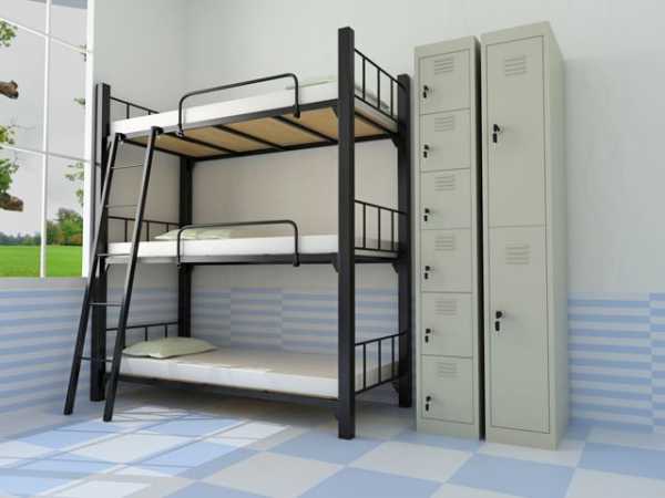 Двухместные, металлические двухъярусные кровати.