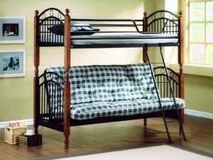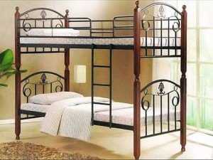 - Onder Metal, Малайзия, представляет конструкцию комбинированную. В качестве материала изготовления используется массив гевеи и сталь, боковые панели украшены коваными элементами. На первом ярусе – диван-книжка впечатляюще больших размеров.
