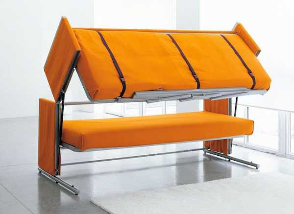 Диван трансформерНе так давно появились очень занимательные двухъярусные кровати трансформеры. которые могут превращаться из дивана в два спальных места друг на другом. Сложно сказать насколько это удобно и станет ли такой диван трансформер пользоваться популярностью у широких масс, но его конструкцию в любом случае следует отметить как очень необычную.
