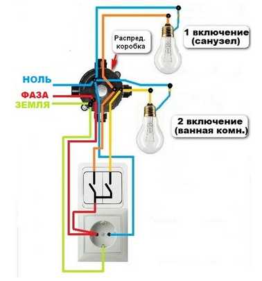 Для того что бы вы все поняли до конца вкратце напишу что куда подсоединять в дозовой коробке. Три провода (фаза, земля и ноль) соединяем с основными скрутками питания коробки. Два провода идущих от блочного выключателя соответственно соединяем с проводами, идущими в ванную и туалет.