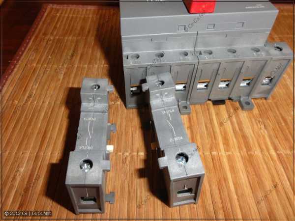 Они упомянуты в другом посте, вот здесь: http://cs-cs.net/abb-accessories-mix, и для соединения реверсивных рубильников следует использовать именно их, и ничто другое. А пихать обычные гребёнки в рубильники OT — не надо!