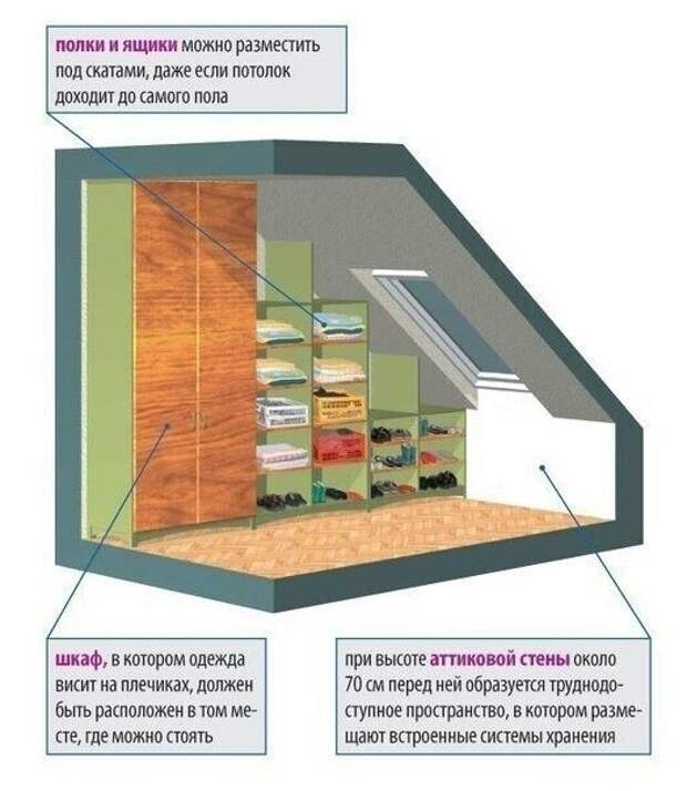 Низкая крыша на мансарде влияет и на высоту помещения