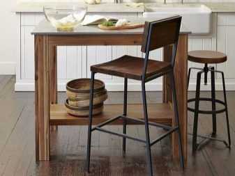 Конструкции барных стульев предусматривают варианты со спинками и в виде табуретов без спинок. Высокие табуреты без спинок станут прекрасным решением для небольших кухонь, так как они занимают немного места и компактно задвигаются под крышку стола или стойки. Поскольку долго сидеть на них не очень неудобно, такие модели стульев хорошо приобрести на тот случай, если барная стойка используется для быстрых приемов пищи.