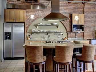 - Если на кухне будет стоять большая барная стойка, ее внутреннее пространство может стать отличным местом для хранения кухонной утвари. Кроме того, в нее поместиться небольшой холодильник.