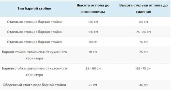 При наличии в доме детей, рекомендуется приобретать невысокие стулья, на которых ребенок может разместиться без помощи взрослых. В приведенной ниже таблице представлена рекомендуемая высота стула в зависимости от высоты стойки:
