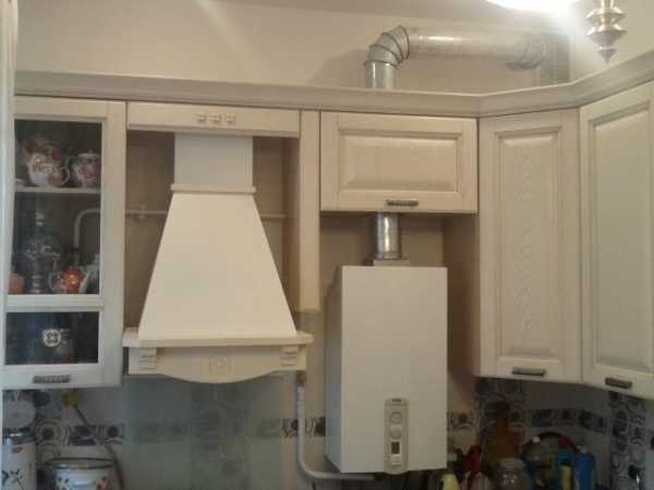 Если котел установлен на кухне, вытяжной воздуховод выводится в вентиляционную шахту традиционным способом – через отверстие, расположенное под потолком. Иногда это просто труба, ведущая на чердак, а оттуда – на крышу.