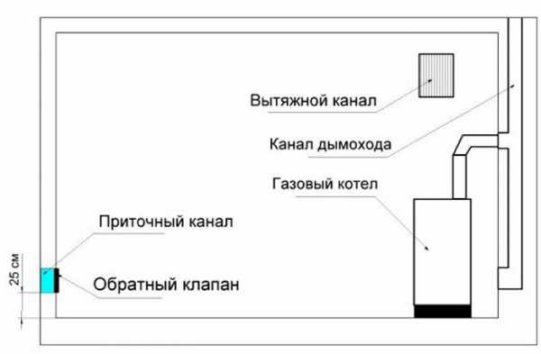 Приточная вентиляция в котельной частного дома делается следующим образом.