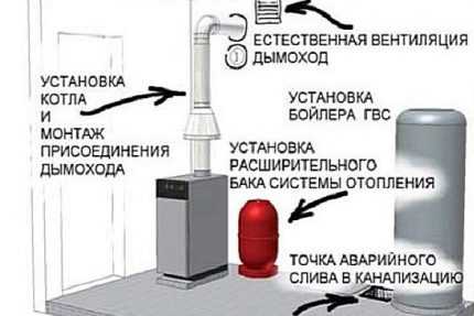 При , которые стали популярным благодаря недорогому топливу, требования предъявляются как к самой котельной, если агрегат располагают в отдельном нежилом помещении, так и к подбору мест для всех элементов вентиляционной системы.
