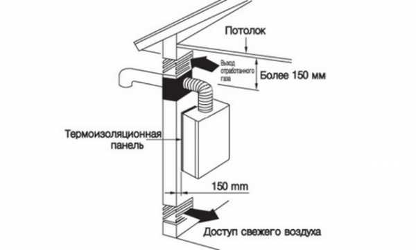 Выходное отверстие не рекомендуется устраивать рядом с котлом. В холодный сезон резкое снижение температуры может повлиять на работу котла, поэтому сверлить стену лучше на расстоянии не менее 1-1,5 м от места установки агрегата.
