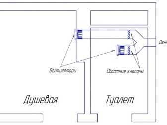 - Если помещения расположены рядом и имеют похожую специфику в виде повышенной влажности, большой разницы температур и сильного запаха, то их можно объединить одной вентиляционной шахтой.