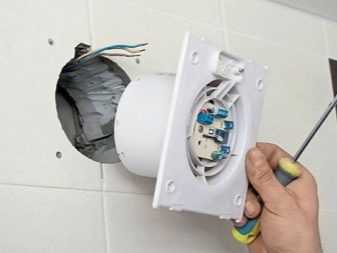 Подбор вентилятора делается по имеющемуся отверстию в стене. Если они не совпадают, то придется либо расширять его, либо уплотнять. Установка производится путем снятия решетки и крепления всех необходимых проводов. Крепить оборудование можно саморезами или жидкими гвоздями. Когда все готово, необходимо установить решетку на место и замазать стык между вентилятором и стеной при помощи герметика.