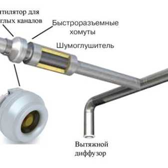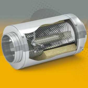 Еще одна комплектующая – это шумоглушитель, который позволяет сделать работу вентилятора менее заметной и громкой. Обычно их делают из жести в форме двух цилиндров, которые разделяет адсорбирующий материал. В некоторых случаях целесообразно устанавливать заслонки, которые пускают воздух при открытии и останавливают при своем закрытии.
