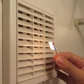 - Поднести спичку к вентиляции. Если есть движение пламени, значит, вентилирование работает полноценно.