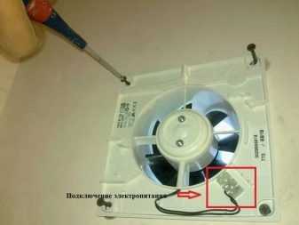 Вентилятор подключается к электропитанию через соединительные клеммы, которые должны быть спрятаны под специальной крышкой или кожухом, чтобы исключалось активное воздействие на них повышенной влажности.