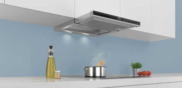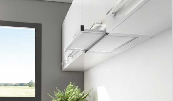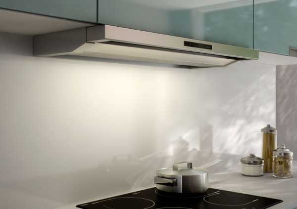 Одно из преимуществ встроенных вытяжек – это компактные габариты и эргономичность