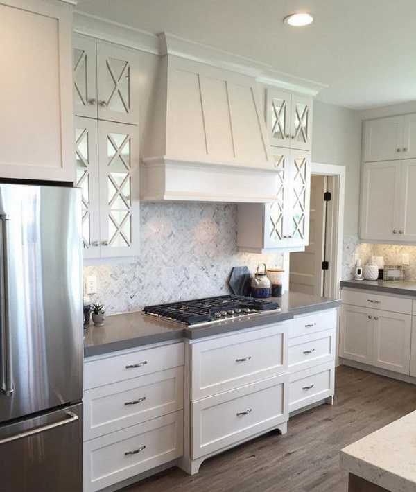 Прекрасный способ замаскировать вытяжку — спрятать её в навесной шкаф. Устройство будет смотреться гармонично с дизайном и основная его часть будет скрыта.