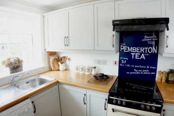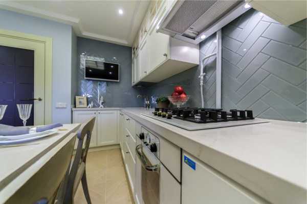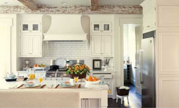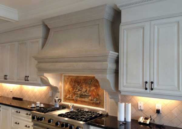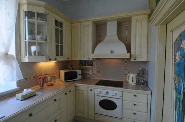 Кухня в стиле прованса с вытяжкой встроенного типа