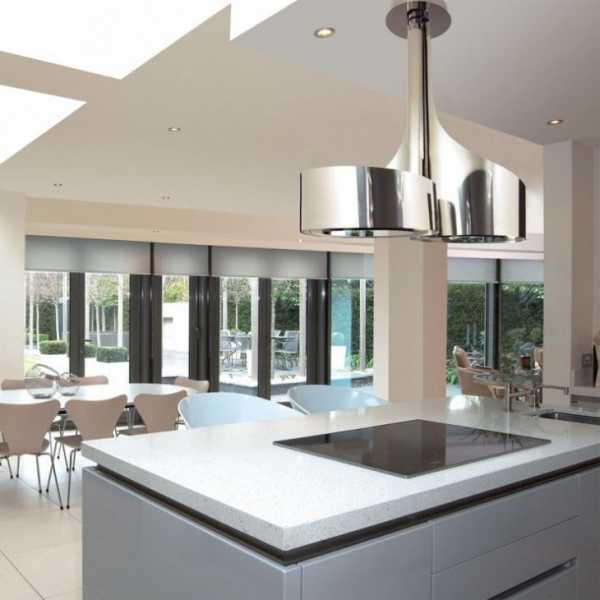 Отдельного внимания заслуживают так называемые телескопические вытяжки. Они также нередко называются «островными», поскольку используются в больших кухнях, где плита может располагаться по центру, из-за чего вытяжка должна находиться непосредственно над ней, вмонтированная в потолок или навесной шкаф. Телескопические вытяжки обладают следующими преимуществами перед другими моделями: