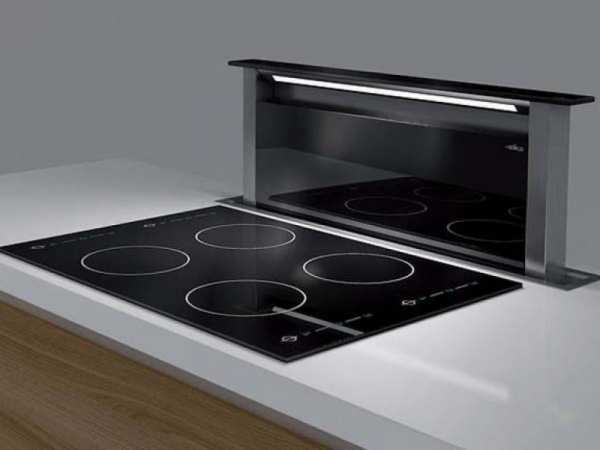 Еще одна достаточно популярная модель – встраиваемая в столешницу. Она обходится относительно дороже, а ее установка может потребовать особых навыков, поэтому проще обратиться в специализированный сервисный центр. Отличительная черта таких вытяжек это, конечно же, бесшумная работа. При том, что техника не издает никаких посторонних шумов, она также демонстрирует достаточно высокую эффективность очистки воздуха.
