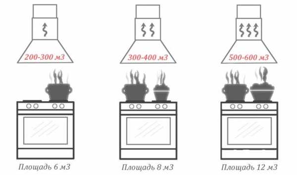 Насколько мощной должна быть вытяжка, зависит от площади кухни