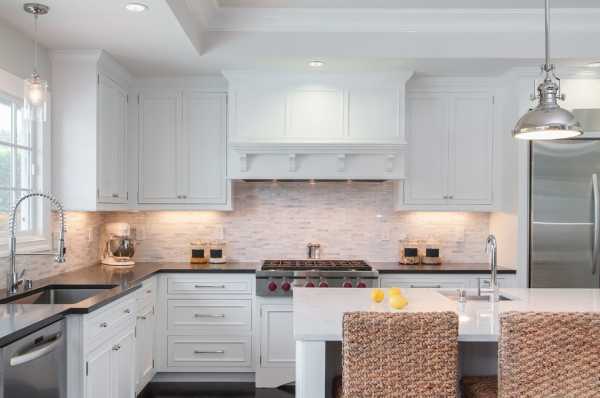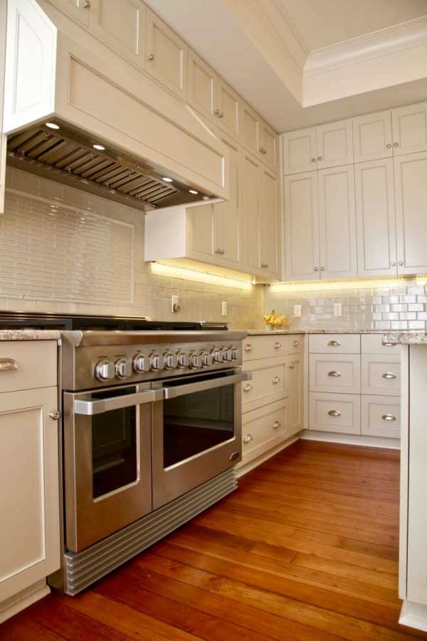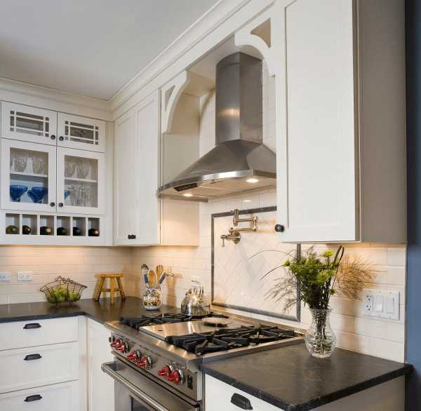 Угловая вытяжка на кухне в стиле современной классики