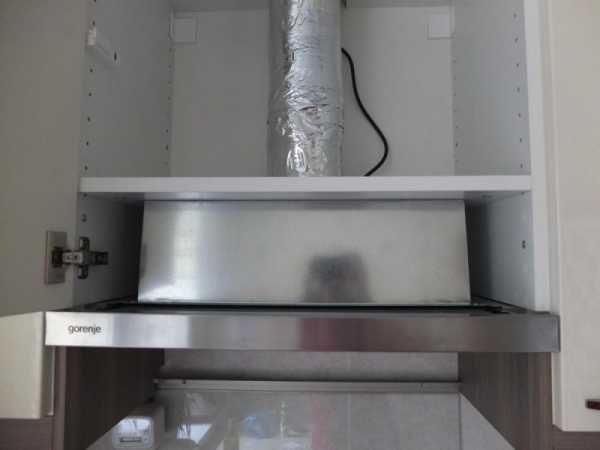 Важно учесть, что при установке внутри шкафа, необходимо будет позаботиться о том, чтобы выдвижная панель имела свободный, лёгкий ход. 60 см вытяжки не так уж сложно спрятать в навесной шкаф. Данный предмет мебели может варьироваться в пределах 60 — 80 см.
