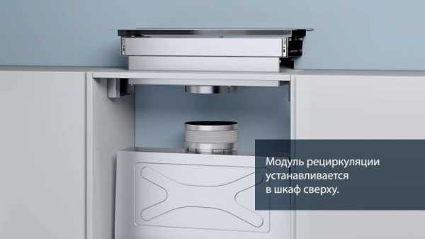 Встраиваемая вытяжка работает так же как и плоская. Она забирает воздух, направляет его в фильтры, очищает и направляет очищенный воздух обратно на кухню.