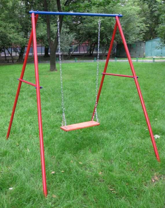 Недостаток стационарной опоры для качелей — это невозможность перемещать качели по участку и убирать их на зиму. По этой причине часто отдают предпочтения переносному виду качелей.