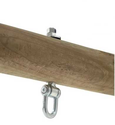 Подвесные качели к опоре необходимо крепить с помощью рым болтов. Это самое простой и надежный способ, который обеспечит высокую амплитуду раскачивания. Он подойдет как для деревянных опор, так и для металлических.