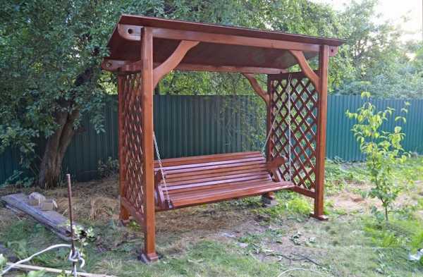 Рис.1. Садовые качели из дерева. Качели станут прекрасным дополнением сада и будут любимым местом отдыха для всей семьи.
