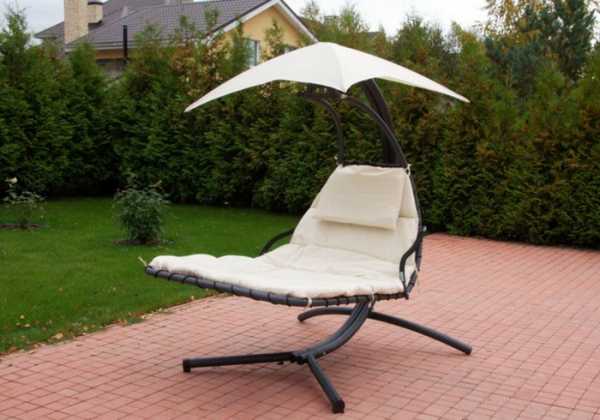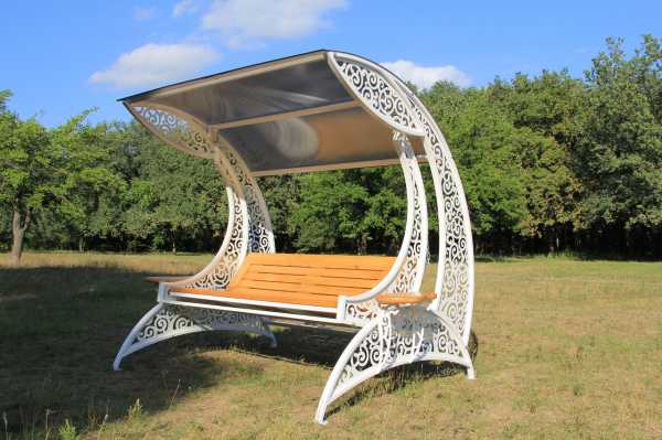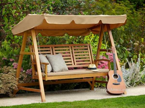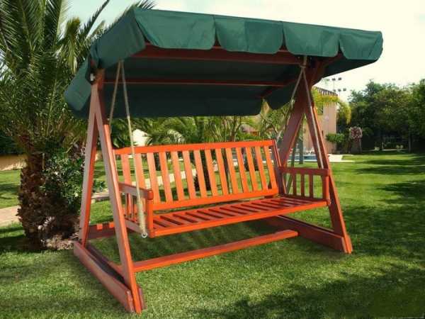Садовые качели, установленные на открытом воздухе желательно оснастить навесом, который защитит вас от палящего зноя и дождя.