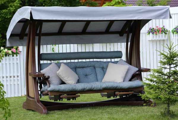 Садовые качели прекрасно подойдут как для проведения посиделок с друзьями, так и для отдыха всей семьи. Садовые качели-диван можно расположить в любом месте сада или на открытой площадке, но в этом случае они должны быть оснащены навесом для защиты от солнца и дождя.