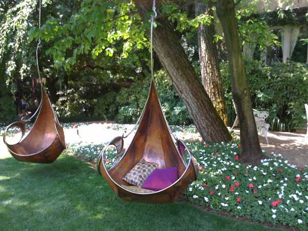 Рис.4. Подвесные качели для спокойного отдыха. Установив подвесные качели в глубине сада можно создать прекрасный уголок уединенности и спокойствия.