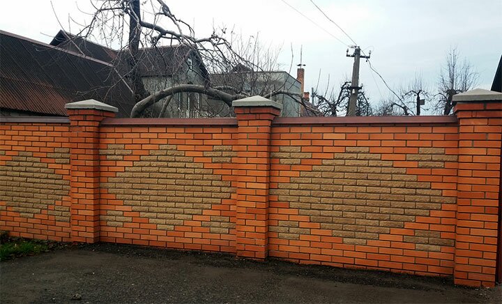 Декоративные ограждения сооружаются в один или полтора кирпича, а вот для более прочных заборов с защитной функцией потребуется двойная кладка. Высота может быть от полуметра до 3,5 м.