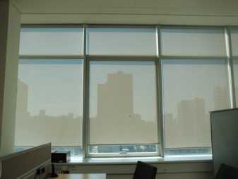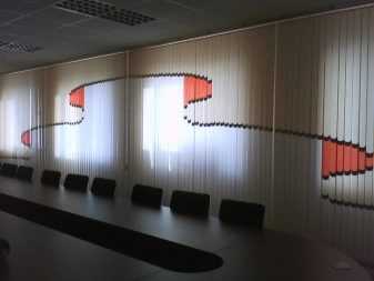 - Что касается строгих, офисных интерьеров, в них актуальны прозрачные тюлевые жалюзи, нейтральные оттенки, жалюзи с неброским рисунком или логотипом компании.