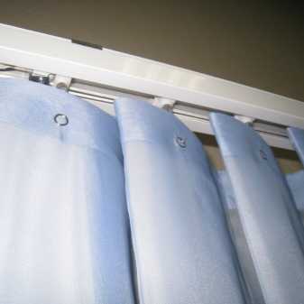 - Потолочный. Классическое исполнение, состоящее из карнизов, механизмов управления и фурнитуры.