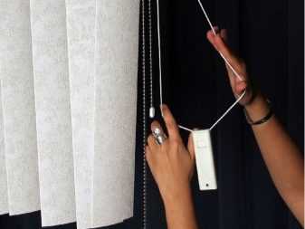Раздвигать жалюзи можно лишь тогда, когда ламели развернуты перпендикулярно окну, то есть, образуют плотное полотно. Единовременное использование цепи и шнура управления не рекомендуется.