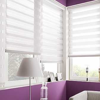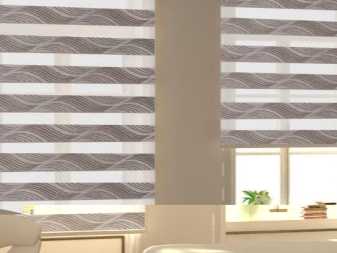 Говоря о разновидностях тканевых штор нельзя не упомянуть и об этом виде. Его отличительной особенностью является то, что ламели расположены вертикально, при этом одна имеет более светлый цвет, а вторая – более темный. Использование таких жалюзи позволяет создавать непревзойденную и неповторимую атмосферу в комнате. Такие шторы могут быть как на всем окне, так и лишь на одном его проеме. При этом стоит знать, что часть ламелей являются прозрачными, а часть не пропускающими вообще свет.