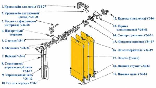 - Собственно ламели – вертикальные пластины, образующие светозащитное полотно на окне.