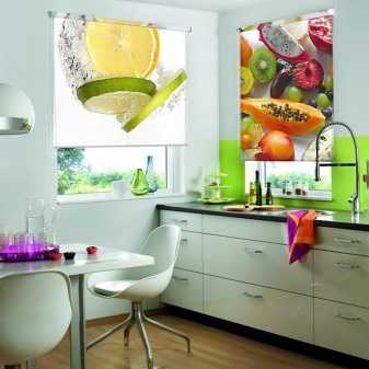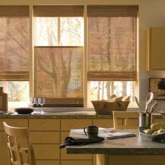 - На кухню подойдут компактные модели, которые не мешают проветривать помещение и снижают риск воспламенения штор от варочной поверхности вблизи.