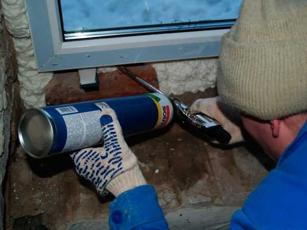 Применение пены для установки оконной конструкции- Баллон встряхивается, вставляется в пистолет.