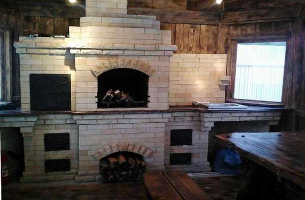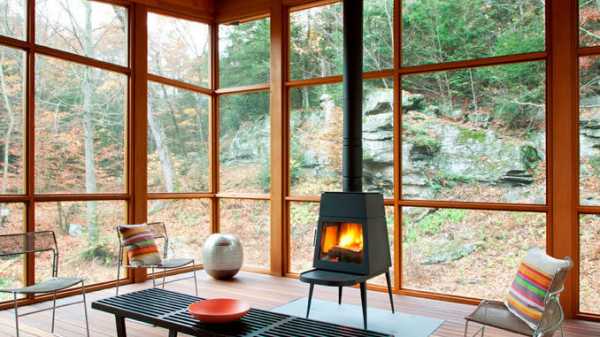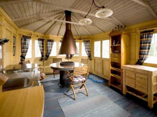 Очаг может располагаться внутри строения. Если на летней кухне, под навесом установить печь, то нет необходимости ставить мангал внутри беседки. Зимой закрытое всесезонное помещение легко отапливается. Монтаж панорамного остекления дает возможность летнюю кухню трансформировать в зимнюю постройку.